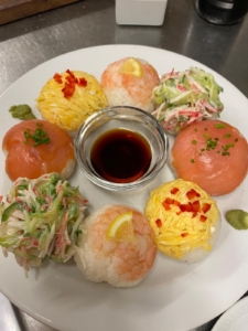 Korokke (Frittierte KartoffelpüreeSpeck-Laibchen)